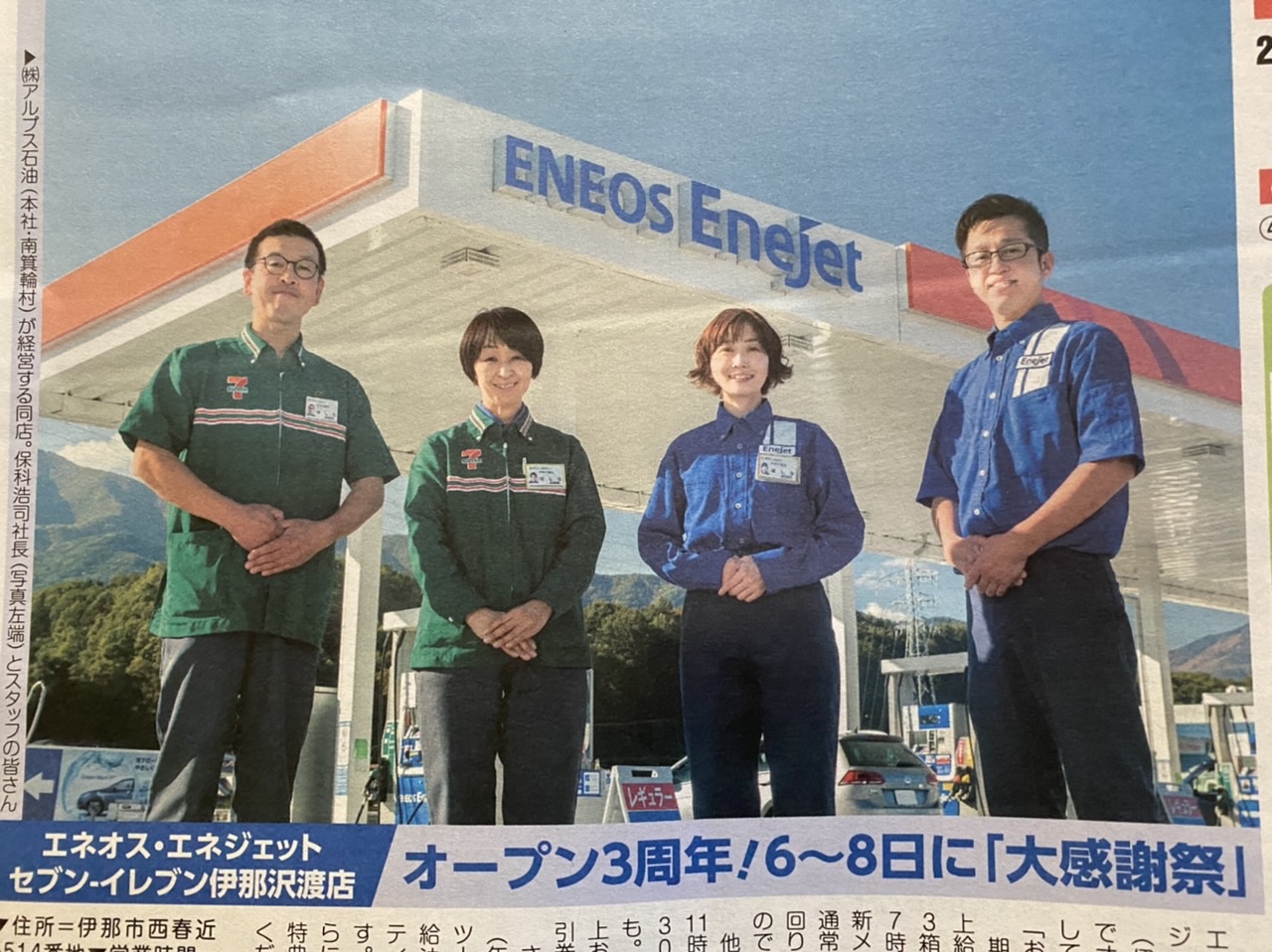 ENEOS.Enejetセブンイレブン伊那沢渡店で11/6.7.8でお客様大感謝祭があるよ。シナノホッペも限定販売しマッスル!