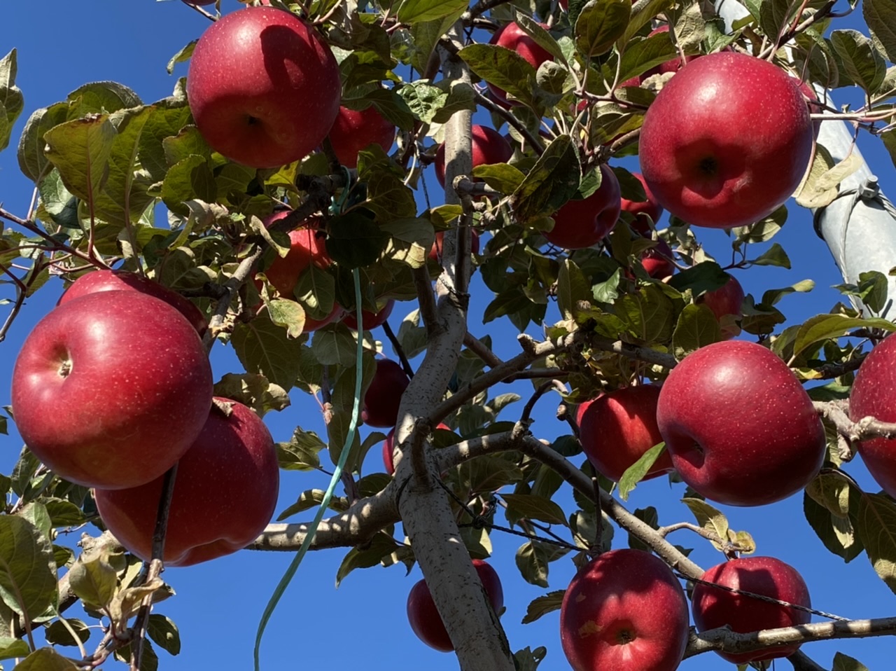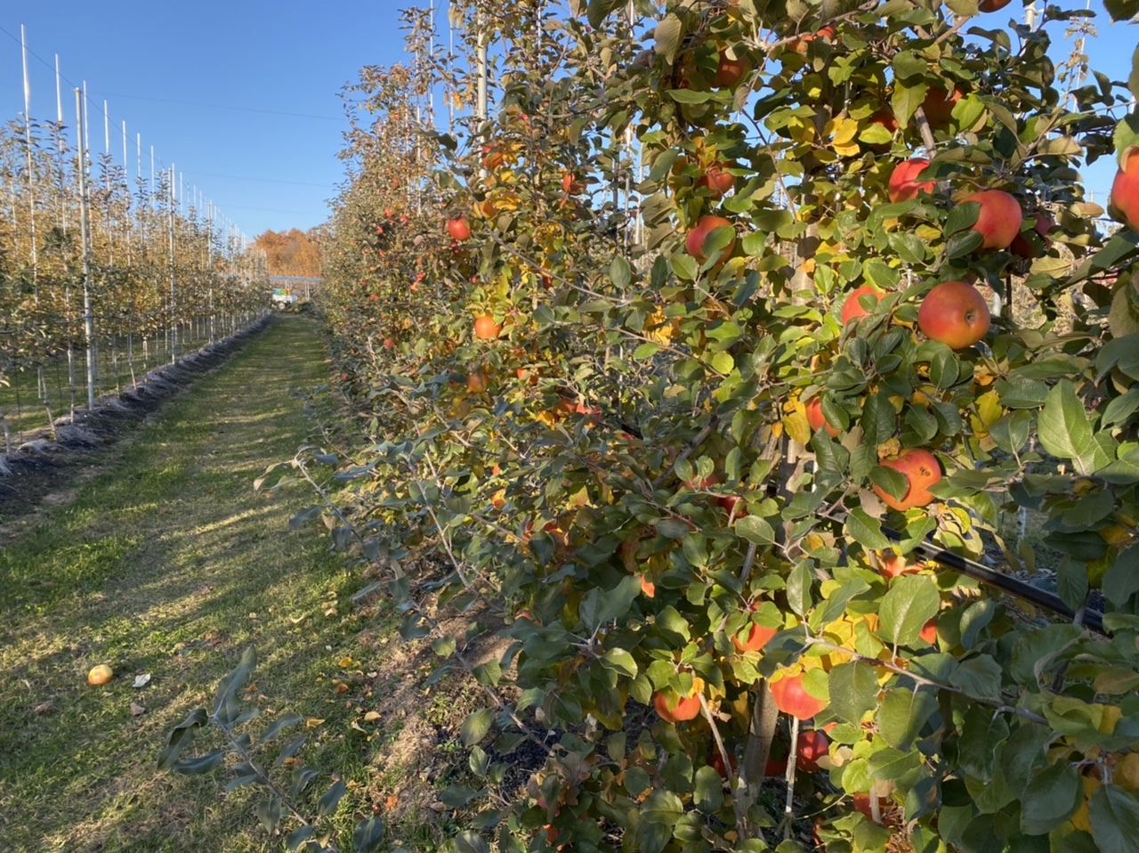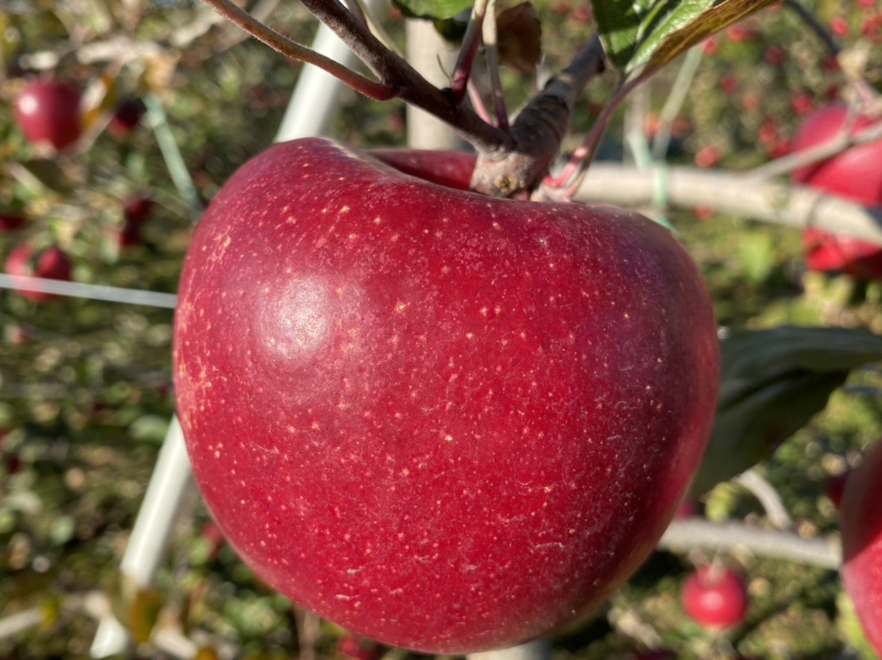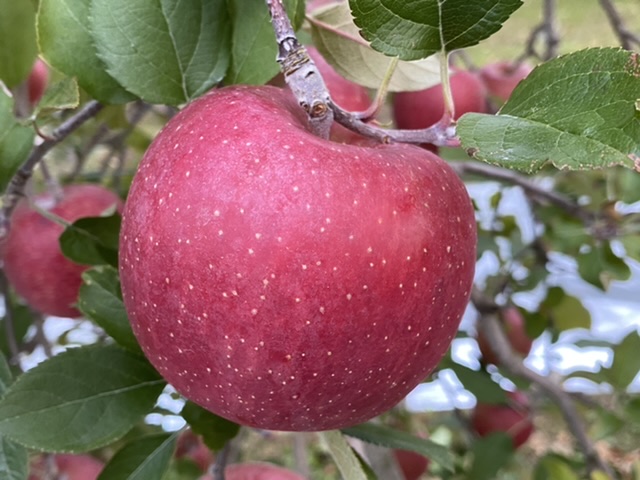 ムーンルージュ収穫を始めました。今年も赤く、そして美味しく出来ました。寒冷紗で夏の太陽を和らげ、弱い肌を守り綺麗なオレンジ色の果実になったよん!