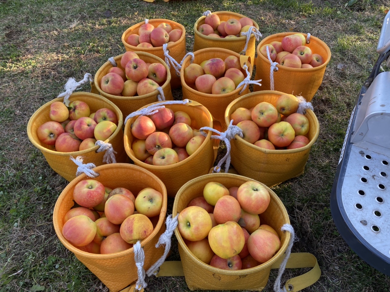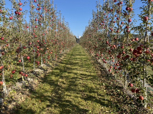 サンふじの収穫でっせ、今年は大玉にツル割れが多くて大変なのです。台風なくても7月の長雨でこれかよぉって愚痴ってもねぇ?