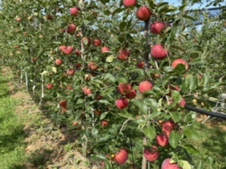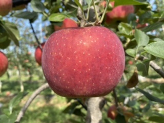 長野県限定品種のシナノリップです。今年は何トン収穫できるかなぁ?シャキシャキで夏りんごとは思えないのよ。