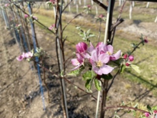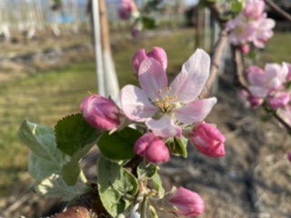 赤い果肉のりんごだよ。再来年かな?皆んなに食べてもらえるのは?
